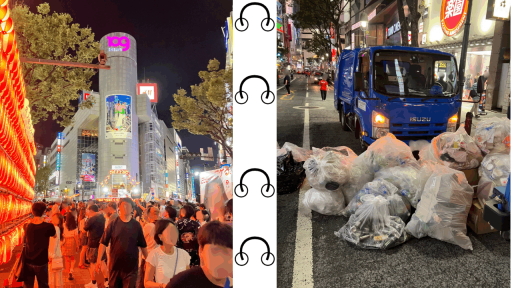 スクランブル交差点を渡れば、人の波、聞こえてくる太鼓の音、